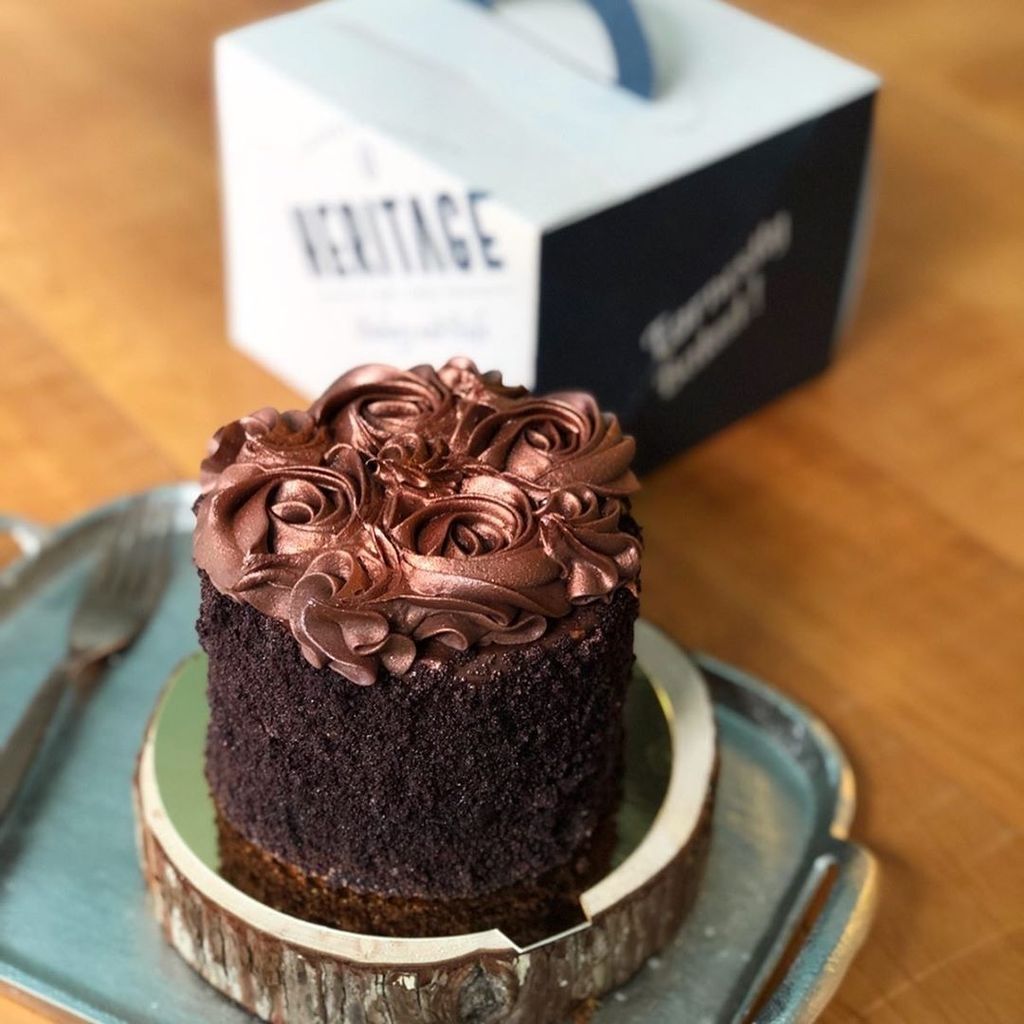 惡魔蛋糕 (Devil's Food Cake) 是經典美式甜點,比一般巧克力蛋糕鬆軟,主要的巧克力成分也比較豐富、濃稠,因此顏色比較深。Heritage的升級版是使用大量的法芙娜100%可可粉, 一口就吃的到奢華濃郁的巧克力味搭上海鹽焦糖, 但又不膩口。